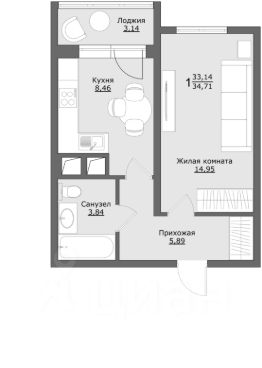 Продаётся 1-комнатная квартира в строящемся доме (Корпус 3), срок сдачи: I-кв. 2026, общей площадью 34.71 кв.м., на 8 этаже. Новый жилой комплекс ''Клевер'' от застройщика ТехноСтройОлимп
