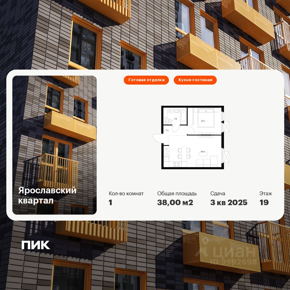 Продаётся 1-комн. квартира площадью 38 кв.м на 19 этаже 25 этажного дома (Корпус 1.1, Секция 1) проекта ПИК Ярославский квартал. Светлый просторный подъезд на уровне земли, функциональная планировка, большие окна, c отделкой.
