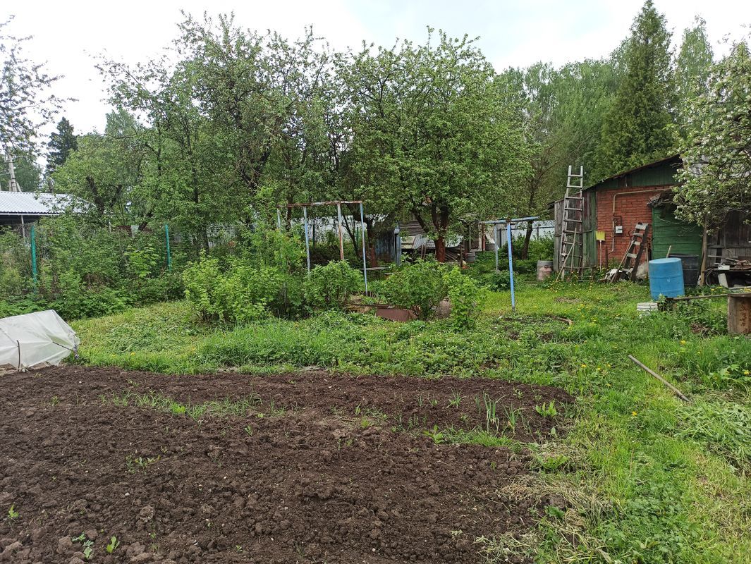 Участок 18 соток, ровный, сухой, полностью огорожен. На участке есть блочный гараж.