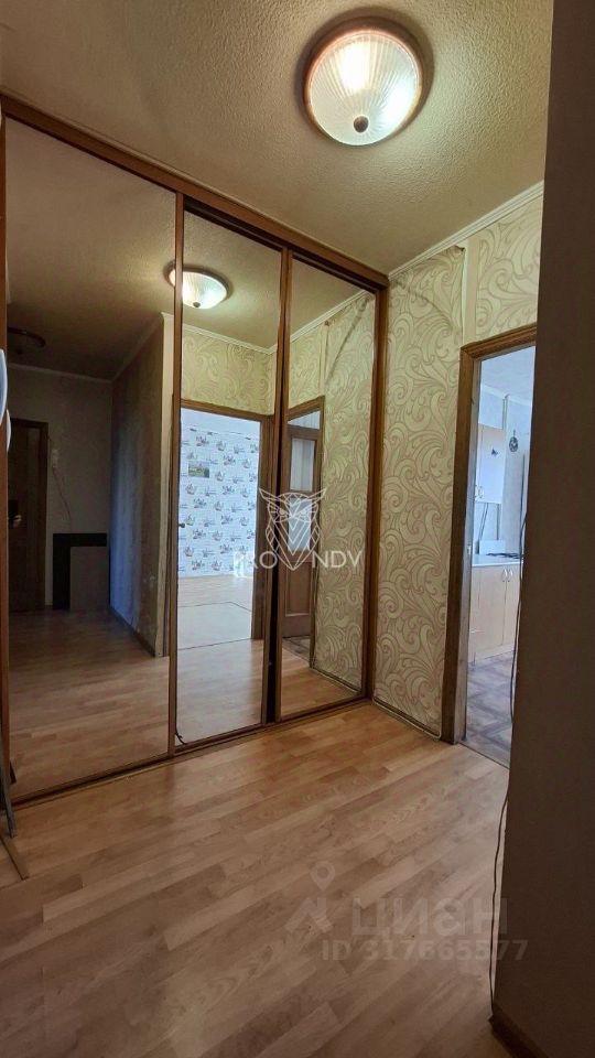 Просторный коридор с встроенным шкафом-купе.