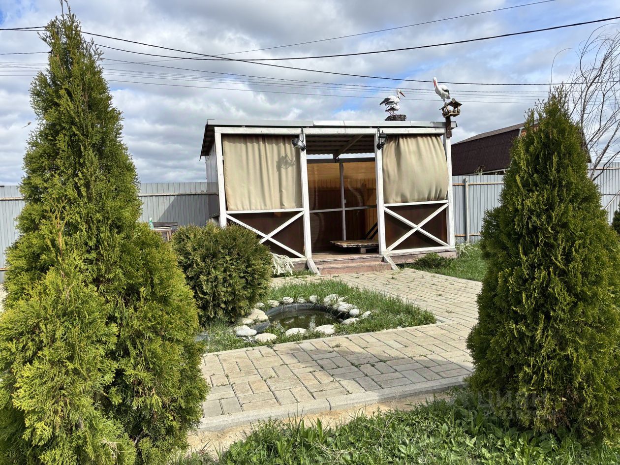 На участке расположена беседка, теплица, мангальная зона, качельки и декоративный пруд.